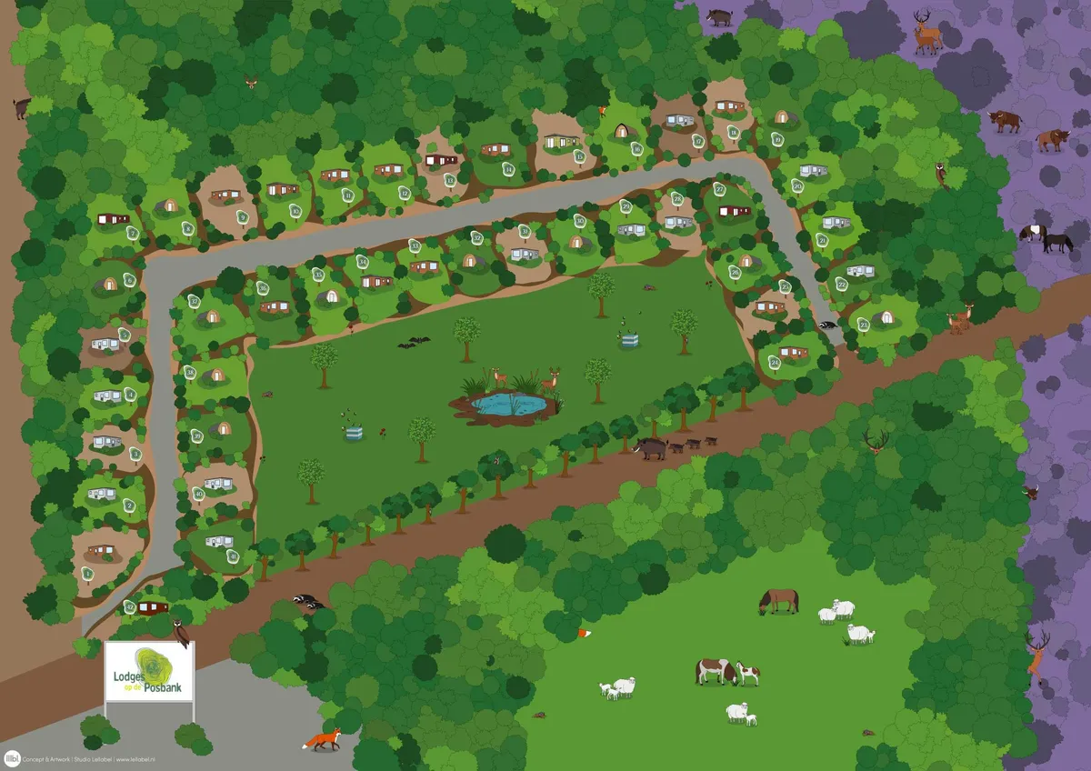 Volg Heuvenseweg 10 in Rheden of houd restaurant de Ruif Heuvenseweg 6 aan. Bij het informatie bord met het groene logo met ‘Lodges op de Posbank’ ter hoogte van de keuken van de Ruif links het pad volgen en dan volgt u totdat u uw Lodge nr. hebt gevonden (1 t/m 23 linkerkant oplopende volgorde vanaf kantoortje met witte vlag (1.) Rechterkant is aflopende volgorde 41 t/m 24. Parkeerplaats voor 1 auto bij de Lodge. Een eventuele tweede auto graag even in overleg.